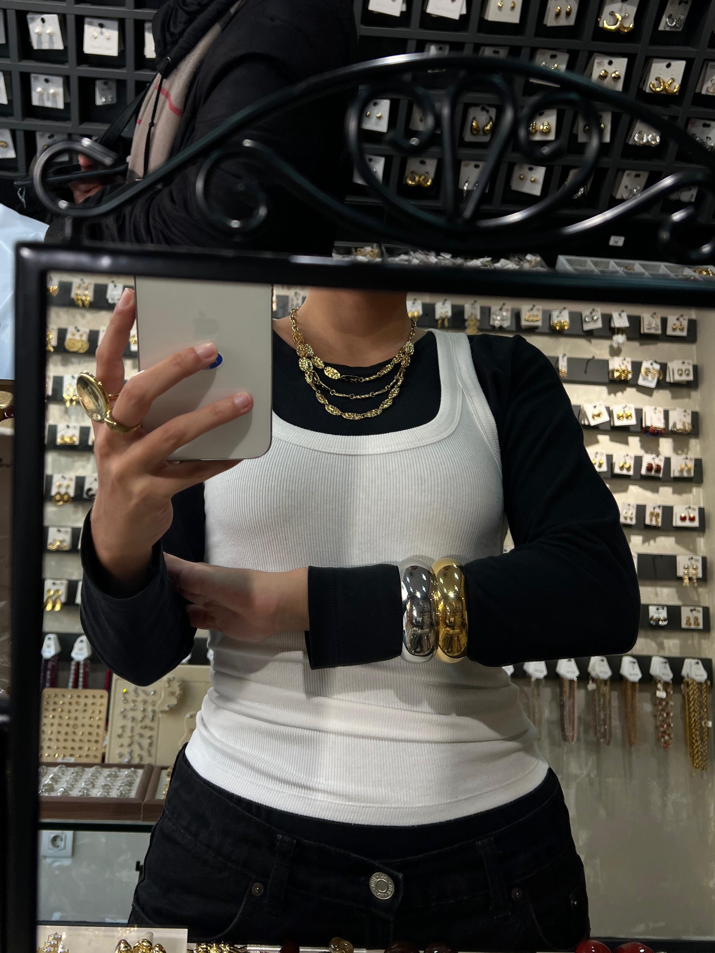 Our stainless steel jewelry iswater-resistantand designed for everyday wear. However, to preserve shine and color, avoid contact with perfumes, lotions, and harsh chemicals.